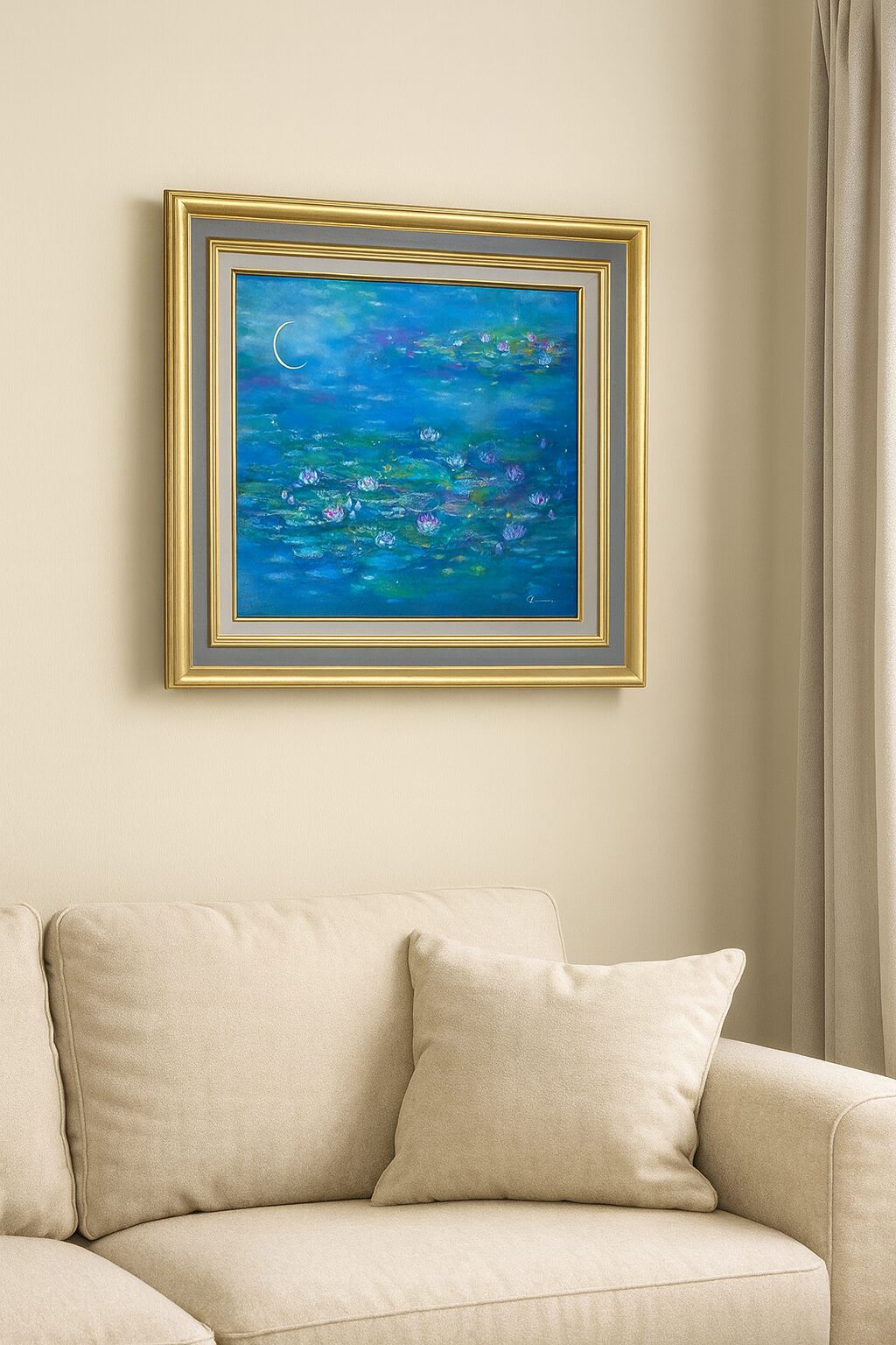 月明かりがにじむ青緑のグラデーションは、見る人の心を自然と穏やかに整えるとご好評をいただいています。