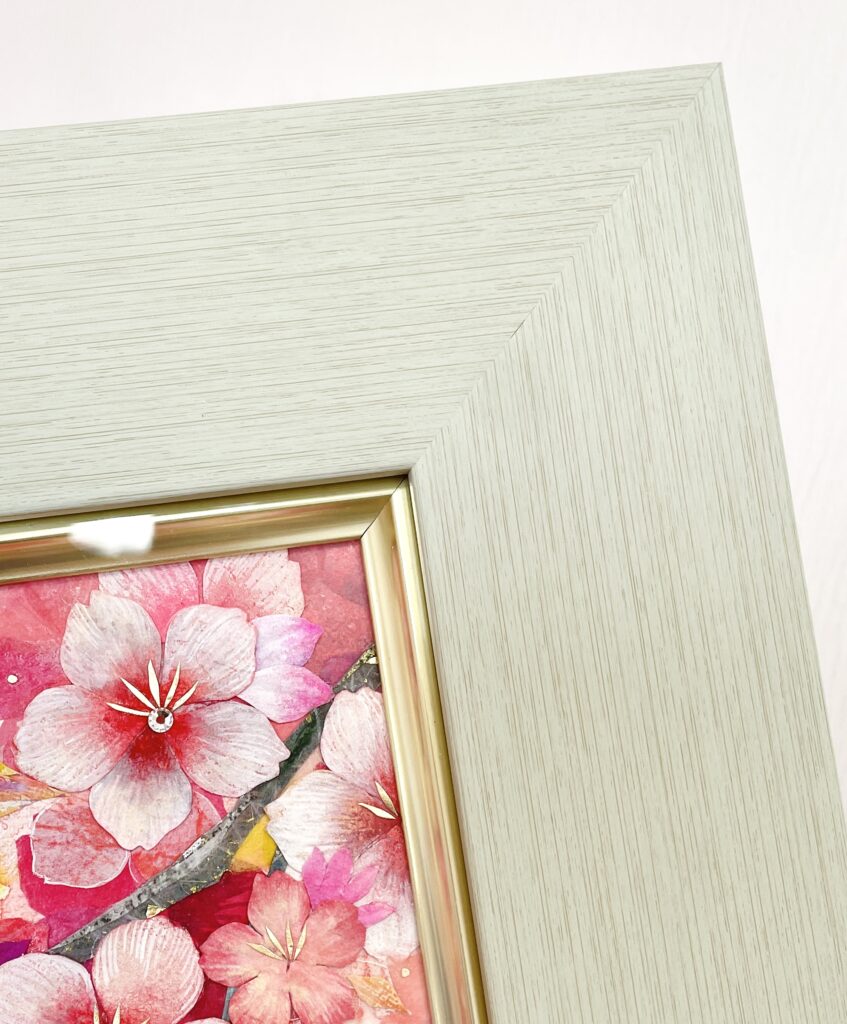 和紙のあたたかな質感と、金箔やスワロフスキーの華やかな煌めきをお楽しみいただける一作です。